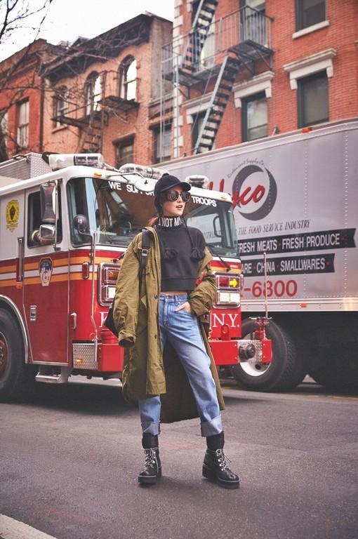 ▲穿上潮流行头走在纽约街头,随便摆几个Pose都是纽约潮女范~