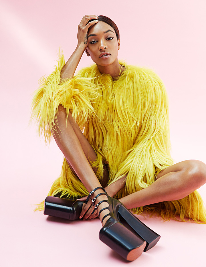 英国名模 Jourdan Dunn(卓丹·邓)登上《Madame Figaro》杂志2016年8月号封面,并身着 Bottega Veneta、Dior、Gucci、Balmain、Chloe 与 Hermes 等品牌为杂志拍摄一组时尚大片,时尚摄影师 David Roemer 执镜。