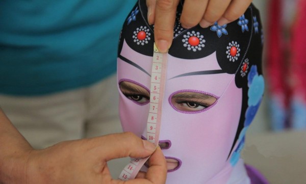 以京剧脸谱和龙凤图案为主题的“脸基尼”。