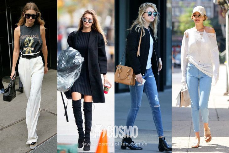而gigi虽然是超模,但她的街拍基本上还是比较实穿的那个类型,很多都是基础款的单品。
