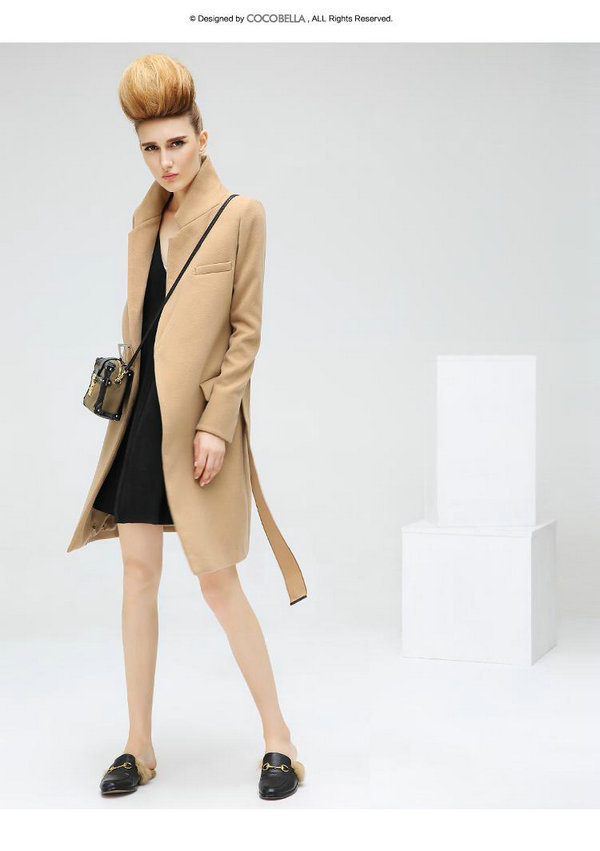 秋冬新品中长款修身飘带羊毛大衣女士毛呢外套CT425,简约的轮廓下风格永存,修身的线条不经意间流露出女性精简干练的一面,精选澳洲进口羊毛,40%羊毛含量,保暖的同时也带来卓越的质感;偏黄光的驼色,穿上立刻减龄,在室内或是室外的光线下,都能呈现好气色,而饱满的浆果红,色调微微偏暗,能够适应更多场合又不会显得超凡脱俗。