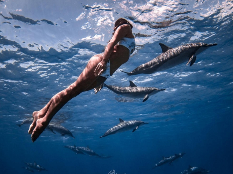 “有时候我游泳的时候,指甲会划到他们的身体,有时候它们向我游过来只是不知道该怎么交流罢了。”