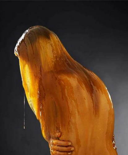 隔着屏幕好粘稠!艺术家千斤蜂蜜倒模特身上瞬间