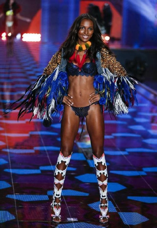 令人出乎意料的是今年的梦幻文胸Fantasy Bra,竟然由2015年刚签约的的新人黑人天使Jasmine Tookes佩戴。