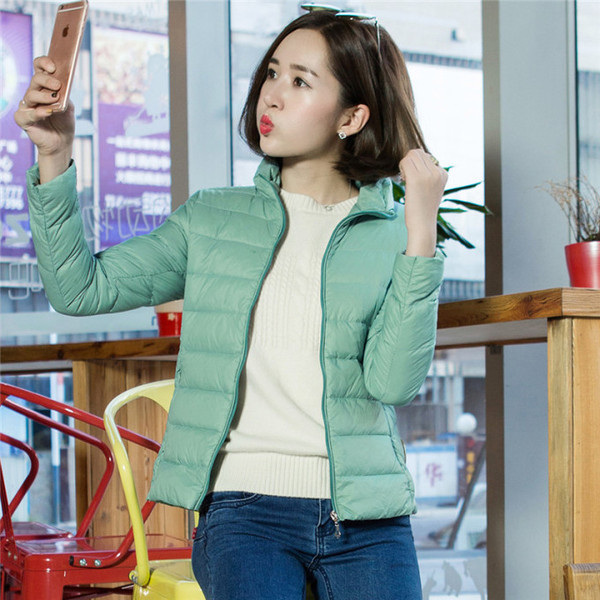 6.韩版修身羽绒服。淡淡绿色的颜色是很衬皮肤的哦,短款设计,时尚经典。这款羽绒服质地轻盈,却十分的保暖;修身设计,穿上效果超好的。百搭的好处,让你再不用为搭配犯难。