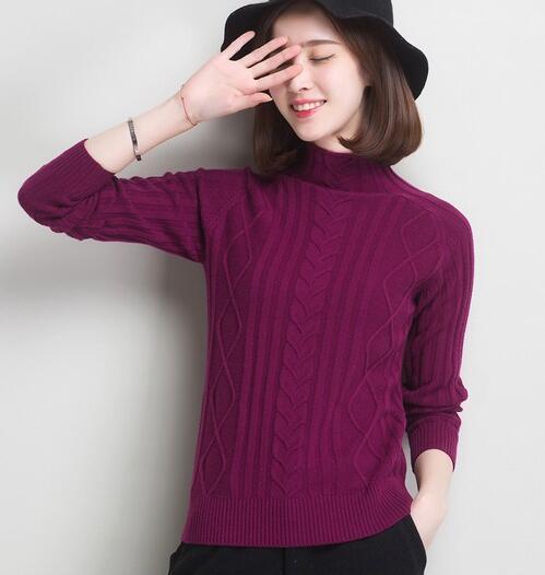 高领纯色针织套头衫
