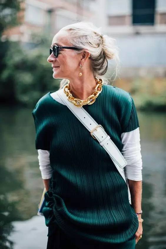 每天将一头银发梳理的服帖利落,在脑后盘起