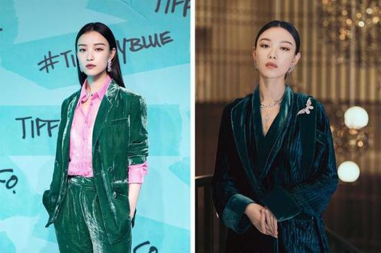 很多人都不约而同的认为绿色不好搭配,其实想要穿出时髦感也很容易。比如你要穿梭于正式场合或者各种轰趴,像倪妮一样选择西服套装或者睡袍式外套都是很不错的选择。丝绒质感更显高贵的气质。