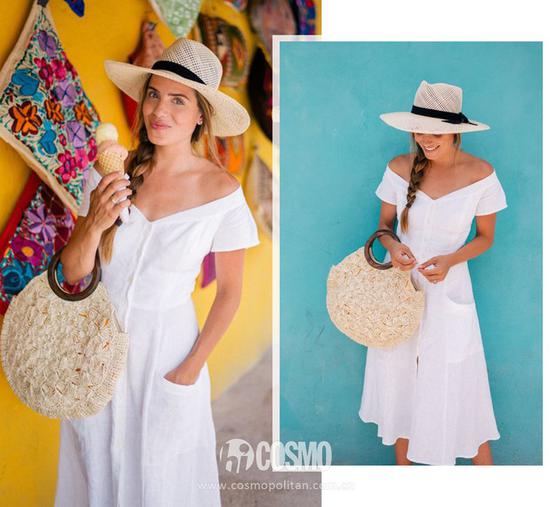 用草帽、发带来点缀亮色,穿上白色连衣裙,配饰的颜色都不用过多考虑,大胆的搭配起来,总之就是美美美。