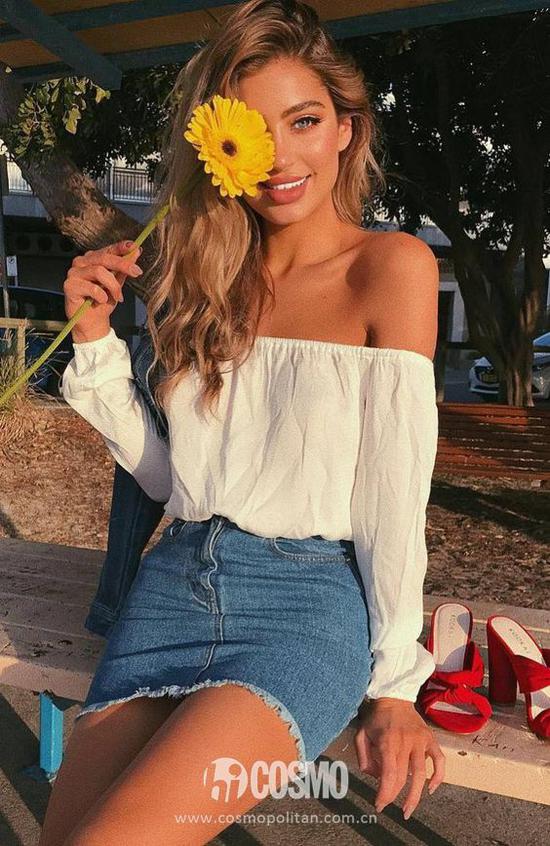 一字肩其实算是非常百搭的了,日常中的牛仔短裤、半裙、长裤都能拿来做搭配,十分日常随意,适合大多数仙女玩一波生活时尚。